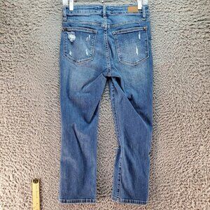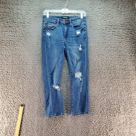 Judy Blue Jeans Womens 5/27 Blue Capri Fit Distressed Cotton Blend Denim