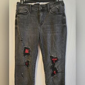 Judy Blue Jeans Women's 7/28 (28x29) Black Mid Rise Skinny Fit Stretch Patchwork