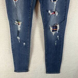 Judy Blue Jeans Women's 9 Flannel Patchwork Cotton Distressed Mid-Rise Skinny Fit Zip Fly 9694.