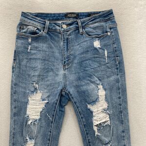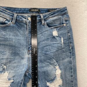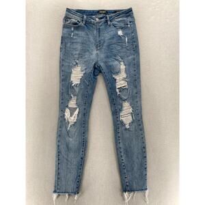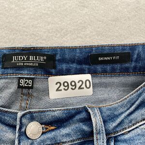 Judy Blue Jeans Women's 9/29 Skinny Fit Blue Stretch Denim Distressed Raw Hem