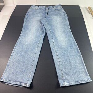 You are purchasing Judy Blue Jeans Women's Plus Measured 33 x 31* Retro Wide Leg High Rise Light Blue Faded Stretch Denim Tagged 14W