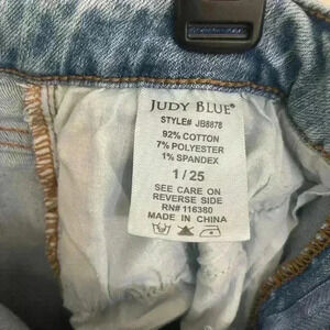 Look stylish and comfortable with these Judy Blue boyfriend fit jeans. The distressed blue color and stretchy material make them perfect for casual wear. These jeans are designed for women and come in size 1/25. The brand Judy Blue is known for their high-quality clothing and these jeans are no exception.