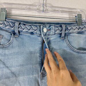 Judy Blue Light Wash Braid Waist Frayed Hem Jeans Shorts size 1XL Boho Vacation