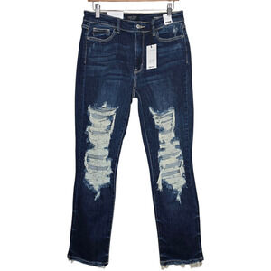Judy Blue Lisse Mid Rise Ripped Straight Fit Jeans Size 11/30