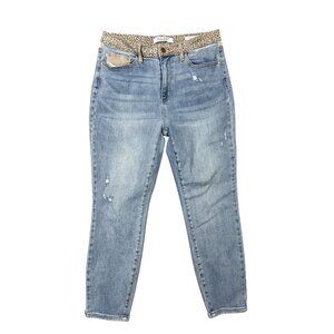 Judy Blue Lucy Slim Fit Cheetah Camo Waist Band Jeans 11/30 High Rise Light Wash