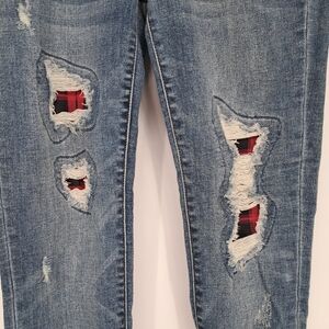 Judy Blue Med Wash Skinny Fit Buffalo Plaid Patch Distressed Jeans Size 28