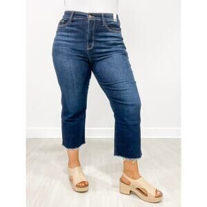 Judy Blue Medium Wash Renegade High Rise Cropped Wide Leg Raw Hem Jeans Size 24W