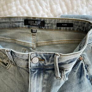 Judy Blue Megan Mid Rise Tinted Pin Tack Detail Flare Jeans, Size 7, Size 28, Light Blue Stretch Denim, High Waist, High Waisted, High Rise, Hi Rise, In like new condition with no flaws or signs of wear.