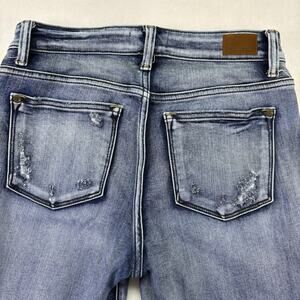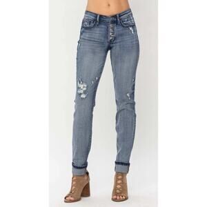 Judy Blue Mid Rise Button Fly Contrast Wash Distressed Boyfriend Fit Jeans 3/26