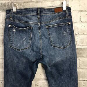 Judy Blue Mid Rise Dark Wash Distressed Stretch Denim Skinny Jeans
