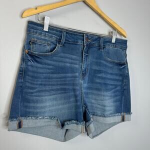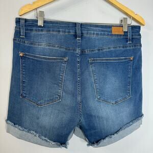 Judy Blue Mid Rise Denim Short Cuffed Hem Med Wash Stretch Women's 1XL- JB150038
