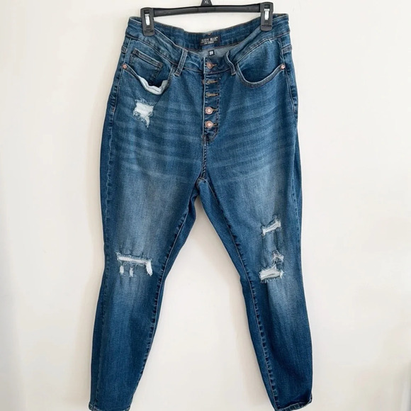 Judy Blue Mid Rise Medium Wash Skinny Jeans with Thermal Patch Insert size 18W