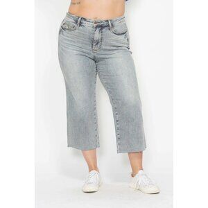 Judy Blue Mid Rise Tummy Control Raw Hem Crop Wide Leg Jean - Size 22W