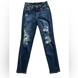 Judy Blue Mid Rise destroyed boyfriend Jean dark wash size 0/24 mid rise denim