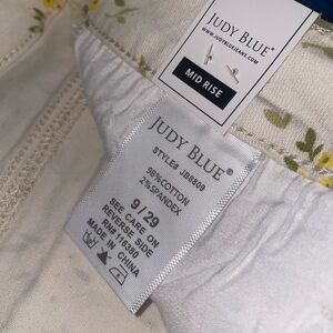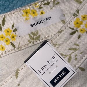 New with tags Judy Blue pants. Skinny Fit, Mid Rise, Size 9/29 Stretchy and Cropped. Yellowish color with flower print.