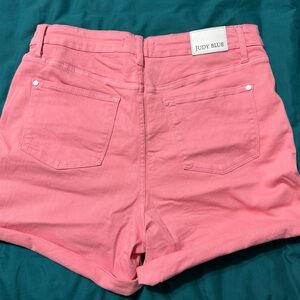 Experience the perfect blend of style and comfort with Judy Blue's pink jean shorts. These high-waisted shorts feature a cuffed hem and a relaxed fit, making them ideal for sunny days. Crafted from a soft denim blend, they offer a vibrant and summery look.