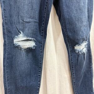 These Mid Rise Destroy Slim jeans combine edgy style with comfort. With a flattering mid-rise fit and crafted from 4-way stretch denim, they offer both flexibility and a sleek silhouette. The distressed detailing adds a trendy, worn-in look, while the slim fit ensures a modern aesthetic. Whether you're dressing them up with heels or keeping it casual with sneakers, these jeans are perfect for effortlessly chic everyday wear.