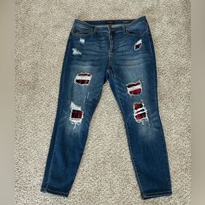 Judy Blue Red Buffalo Plaid Distressed Relaxed Fit Jeans Cotton Women’s Size 2XL