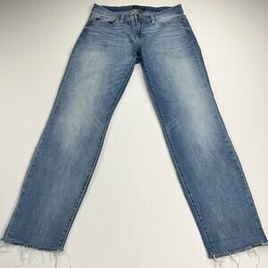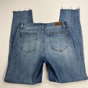 Judy Blue Relaxed Fit Ankle Jeans Raw Hem Mid Rise JB82222 Medium Wash Size 7/28