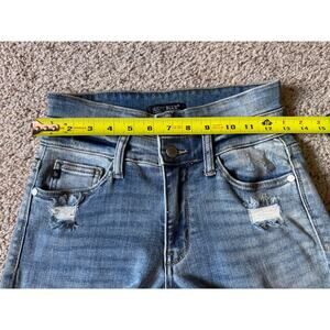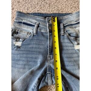 Judy Blue Relaxed Fit Double Waistband Jeans Button Fly Distressed Denim Boho