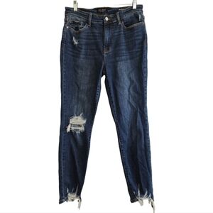 Judy Blue Relaxed Fit Jeans 29 Dark Wash Chewed Hem Distressed