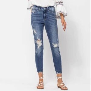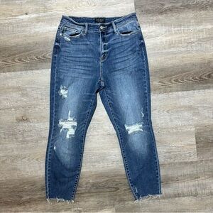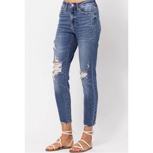 Judy Blue Relaxed Fit Jeans Medium Wash Distressed Stretch Comfy Denim 9/29
