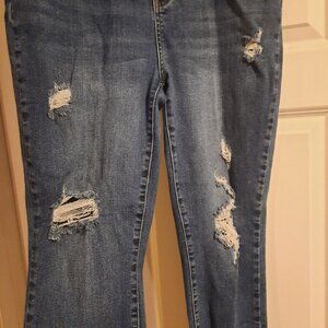 Judy Blue Relaxed Fit Jeans Size 15/32 Mid Rise Distressed Raw Hem Ankle Length