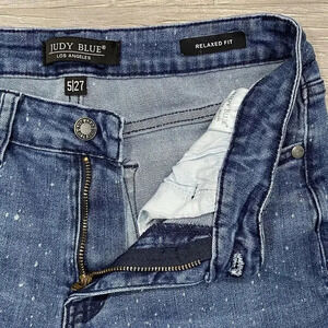 Judy Blue Relaxed Fit Jeans Sz 5/27 Bleach Splattered Mineral Wash Stretch Denim