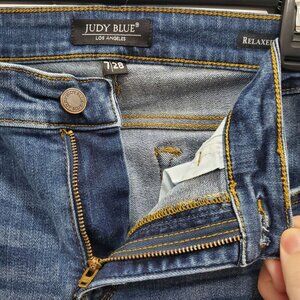 Judy Blue Relaxed Fit Women's Darker Wash Distressed Straight Leg Jeans Sz 7/28