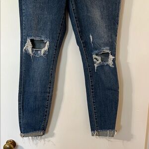 Stylish ankle jeans with ripped details. Perfect for a casual look. Comfortable fit.