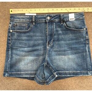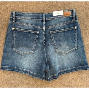 Judy Blue Shorts Womens 1XL Mid Rise Jean Hemmed Whiskered Stretch Denim