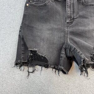 Judy Blue Shorts Womens Large Black Distressed High Rise Frayed Hem Denim Stretch
