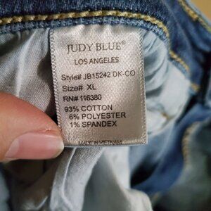Judy Blue Shorts Womens XL Blue Distressed Denim High Rise Raw Hem Stretchy