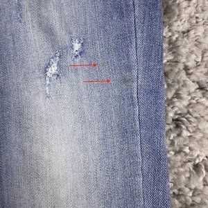 There are 2 small faint stains on the left leg. No other issues. Please see pictures for better details.