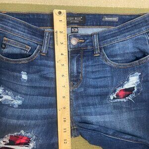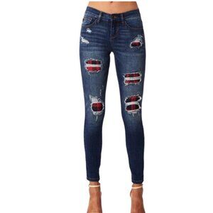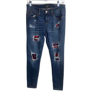 Judy Blue Size 9 Buffalo Plaid Patch Skinny Jeans Distressed Fall Denim Stretchy
