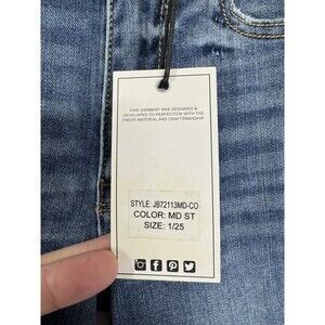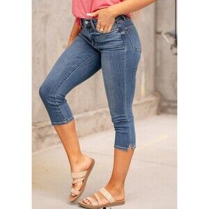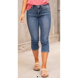 Judy Blue Skinny Fit Capri Womens 1/25 Blue Denim Jeans Mid Rise Medium Wash Side Slit #72113. New with tags. Measurements in photos. Fast shipping!
