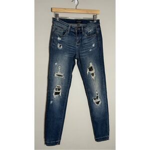 Skinny fit distressed jeans from Judy Blue. Rips backed with camo fabric. Size 5/27. See photos for measurements. Gently preowned condition with no tears or stains.