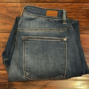 Judy Blue Skinny Fit Distressed Ripped Blue Denim Jeans. Size 14W, raw hem style, factory distressing design.