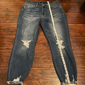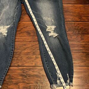Judy Blue Skinny Fit Factory Distressed Ripped Blue Denim Raw Hem Jeans Boho