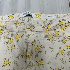 Judy Blue Skinny Fit Jeans Floral Yellow Green Cream Stretch Women's 13/31