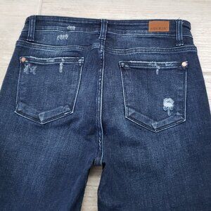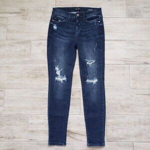 Judy Blue Skinny Fit Jeans Women's Destressed Dark Wash Stretch Tapered Leg 29
