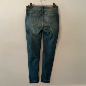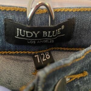 Judy Blue Women's size 7 / 28 Skinny Fit Medium Wash Distressed Jeans. Judy Blue brand women's jeans in a size 7JB or 28 waist. Skinny fit through the legs, distressing at the thighs and knees. Frayed ankles. Measurements as pictured. In great pre-owned condition, see photos for more details.