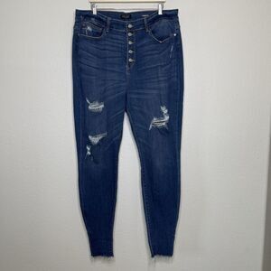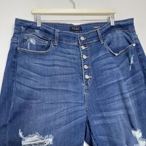 Judy Blue Skinny Button Fly Denim High Rise Distressed Ripped Stretch Jeans Size 22W TALL