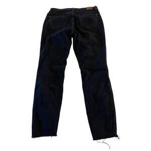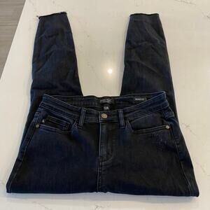 In good used condition. No stains. Distressed with a animal print pattern. Zipper fly. Mid rise. 27.5" inseam. Raw hem. Women's size 7 /28.