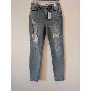 Judy Blue Skinny Lace Peekaboo Distressed Stretch Ankle Jeans Sz 15/32