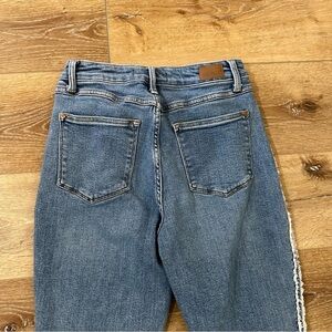Judy Blue Slim Fit Women’s High Waist Medium Wash Side Fray Jeans Sz 5/27 GUC