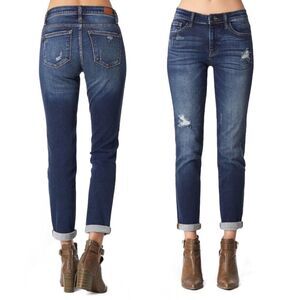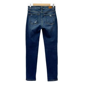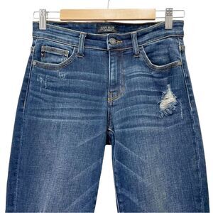 Judy Blue Slim Tapered Jeans Dark Wash Distressed Denim Straight Leg Size 26 | 2
