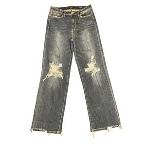 Gorgeous Judy Blue jeans in size 11/30, straight fit. Excellent preowned condition, with distressing on front and hems, so cute, in a great darker wash. No flaws.