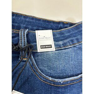 The product is a pair of Judy Blue women's denim shorts in a size 31 (actual 32x2.5). They are in a calming indigo blue color with a cuffed style. The shorts are made of denim fabric, making them durable and comfortable for everyday wear. Perfect for casual outings or dressed up with a top for a stylish look, these shorts are a versatile addition to any woman's wardrobe.
