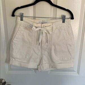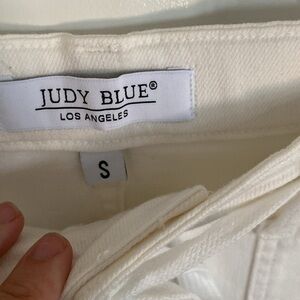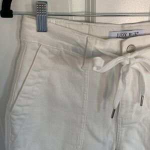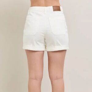 Judy Blue White Cargo Denim Shorts High Waist Cuff Relaxed Fit Small